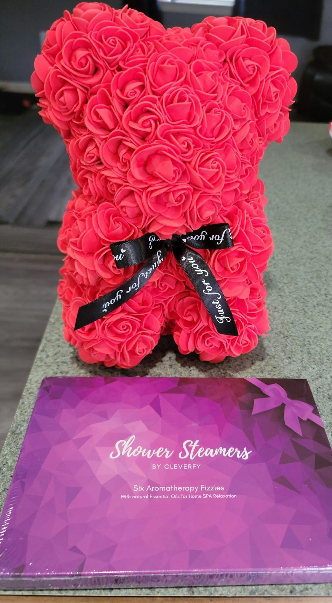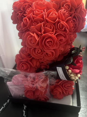 Adorable and thoughtful gift! The rose teddy is a sweet touch, and the quality is great. Perfect for showing someone special they're loved. Would definitely recommend for a birthday, anniversary, or just because!