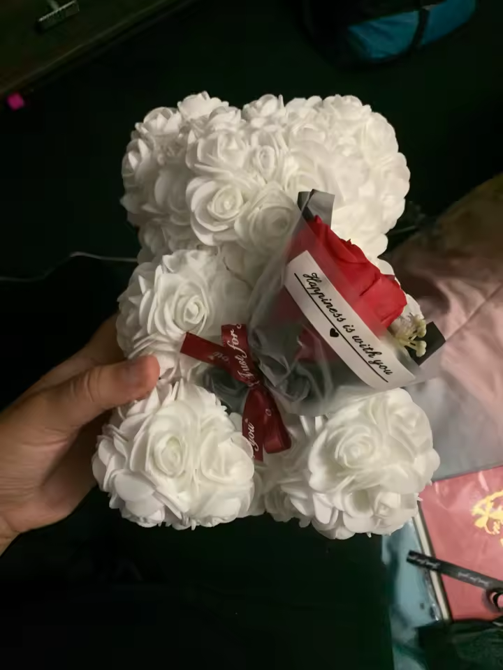 The preserved roses are designed to last 3–5 years (or even longer!) with proper care, keeping their soft, velvety beauty forever. They're not fresh flowers that wilt — they're carefully preserved to stay vibrant and romantic for years, making your rose teddy bear a timeless symbol of love. 🌹💖